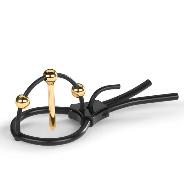 What kind of load will bring your glans into intense ecstasy? Simply move and fix the golden decorations along the loop - one placed around the glans, the other stretched over the tip of the penis - until you find your favorite position.
