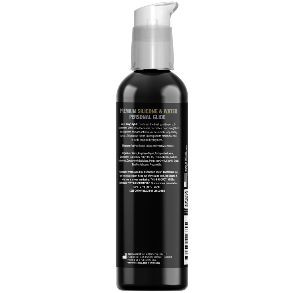 Hybrid is an elegant fusion ideal for those who crave both the resilience of silicone and the lightweight, easy-clean-up characteristics of a water based lubricant. For those who have always wished water based lube would last longer, or that clean-up for silicone lubricant was more simple, Swiss Navy may have just created your favorite new lube – Meet Hybrid!