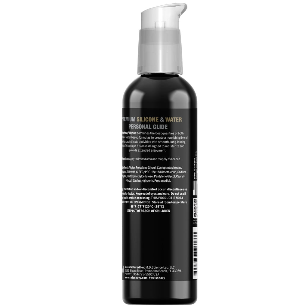 Hybrid is an elegant fusion ideal for those who crave both the resilience of silicone and the lightweight, easy-clean-up characteristics of a water based lubricant. For those who have always wished water based lube would last longer, or that clean-up for silicone lubricant was more simple, Swiss Navy may have just created your favorite new lube – Meet Hybrid!