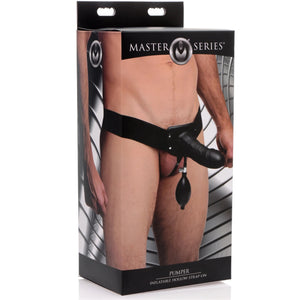 Pump up this hard cock and enjoy a swollen, hot rod to pound your partner with! Made of a thin layer of supple silicone over a firm, hollow shaft, this body safe and realistically styled cock works with or without an erection! Pump the easy to use removable bulb to add more and more girth. An elastic band runs between your balls and along the back of your thighs, leaving the ass open for more play options. The thick elastic waistband is stretchy enough to fit most body sizes and shapes for more versatility and comfort. The non-porous, body-safe material is phthalate-free and will not harbor any harmful bacteria.