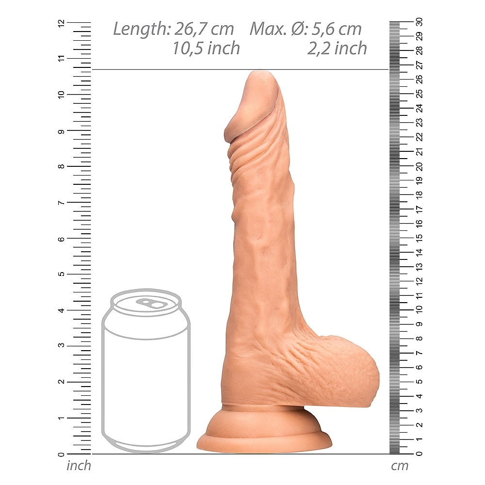 Enjoy the Skin" of velvet-soft, lifelike skin with this incredibly realistic dildo. Meticulously designed with a pronounced head, bulging veins, and hanging balls. The super-lifelike shapes, textures, and colors of this dong truly look and feel like the real thing! Made from Phthalate-Free Skin TPE, this squishy material mimics the softness of real skin and is completely body-safe. This beautifully crafted dildo is made by injection molding in order to eliminate smell and defects and at the same time increase its thermo-stability and durability. The ultra-strong suction-cup sticks to nearly any smooth or flat surface. The suction-cup also doubles as a harness-compatible base that remains snug in its place even when the action gets hot!