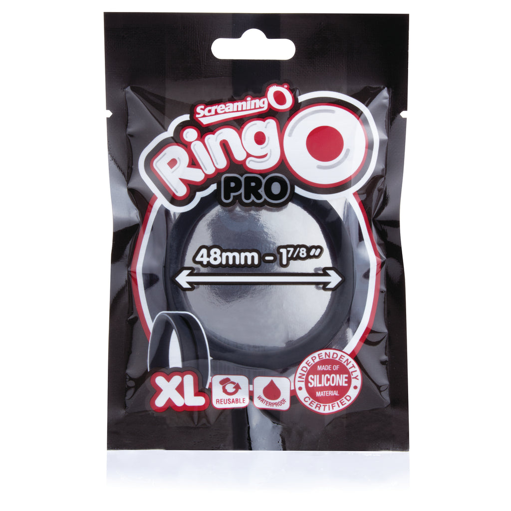 The RingO Pro XL is a simple super-stretchy penis ring featuring a wider band for a comfortable and secure fit. Made of lab-tested body-safe silicone, the RingO Pro LG is as reliable as it is safe to wear and gives men and their partners an effective tool for erection enhancement and longer-lasting sex! Its soft flexibility and 1 7/8” diameter makes it easy to fit around extra-large members and stay put for a more satisfying experience. And thanks to its premium silicone construction, the RingO Pro XL is durable and reusable – simply wash it with soap and warm water and keep it in a cool, dry place to keep it in peak condition. Ships in random color.