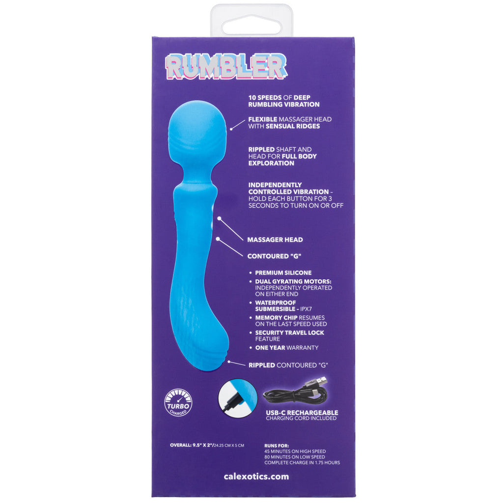 Discover unparalleled versatility with the Rumbler Rumble Wand, a dual-ended massager designed to satisfy every craving. Featuring a flexible head for broad, rumbly stimulation and a contoured "G" end with a rippled shaft, this wand delivers powerful pleasure inside and out.