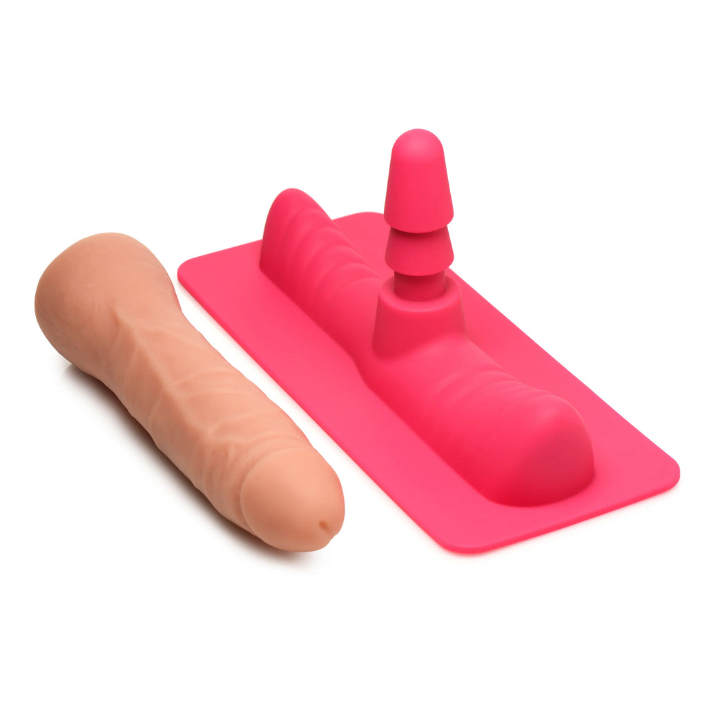 Customize your Saddle Pro with this adapter! Screw it into place and then attach any Vac-U-Lock compatible toy to the double flared plug to keep it in place! When you customize, you can ride the powerful vibrations on your saddle with a toy that feels good and fits perfectly! A realistic, 7.25 inch long dong is included so you can enjoy riding right away! The round head, long veiny shaft, and squishy but firm rod feels amazing when you're mounted on top of the machine and riding waves of sensory bliss! Made out of soft, silky smooth, premium grade silicone the adapter and dildo are both phthalate-free, body-safe and best used with water-based lubricants only. To clean, remove the adapter and dildo from the Saddle Pro and wash them with warm water and mild soap. Then rinse them, spray them with a toy cleaner, and pat them dry. Store each item separately and out of direct sunlight or heat.Â
