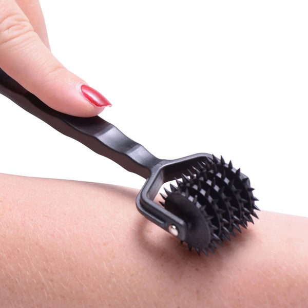 This modern take on a Wartenberg wheel features a row of 5 spikey pinwheels for your pin-pricking pleasure. The ergonomically-shaped handle allows for good grip in those hot and heavy moments when you want to deliver a subtle but sharp sensation. The smooth rolling motion will glide over the whole body, dipping easily into those most sensitive spots. Ideal for sensation play, this device pairs well with a blindfold to keep your partner guessing where they will feel that delightful sting next. Lightweight and travel-friendly, this pinwheel is a simple way to spice up any sexual experience.