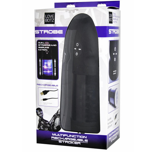 This multi function, automatic, rechargeable stroker is loaded with features for an incredible masturbation experience! The inner chamber is made of firm, stretchy rubber, lined with textured fingers to stroke you into ecstasy. The thrusting and swirling motion will move up and down your cock, stimulating you with every stroke. With 6 modes and 3 speeds to choose from, you can choose how fast or slow you want it. Splash proof and designed for an easy grip, this easy to use masturbation aid does practically all the work for you. In addition to all these exciting features, it even has a light-up display, for an incredible one-man show! Includes a USB cord so you can charge it on the go, just plug into your nearest USB port to power up, making it the perfect companion for computer viewing.