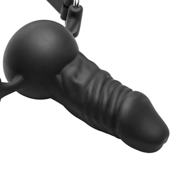 This erotically shaped gag features a penis mouth piece with semi realistic texture detailing. Made of premium silicone, the Suppressor is non-porous and hypo allergenic. The adjustable silicone straps are attached to the gag by two metal O-rings. Use the optional locking feature by adding your own padlock to secure your subject. The gag can be worn with the penis in to restrict their speech, or with it out to force them to pleasure you. Whether in or out, this devious piece will keep your plaything perfectly gagged and compliant.