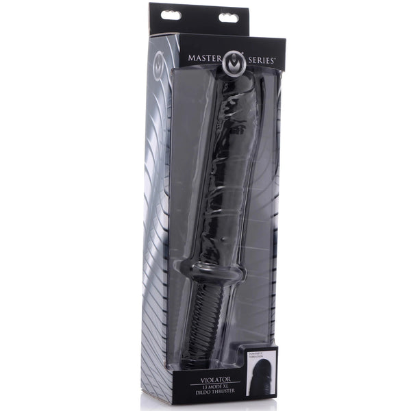 Plunge this massive, veiny dong into yourself or your partner for enormous satisfaction! This vibrating monster cock will buzz your brains out as it thrums deep in your body! With a mighty 9.5 inches of textured length, 4 intense vibration speeds, and 9 unique patterns of pulsation, you have plenty to work with! Take a grip on the handle and aim for your favorite hole! Imagine this huge, humming shaft as it hammers in and out of you.