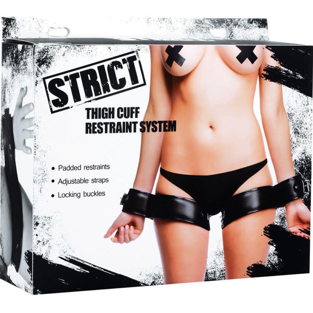 Your plaything will not be able to move their wrists when you bind them with this unique cuff set. Each restraint buckles around the thigh and connects to a wrist restraint. All four buckles are made with a unique locking system that allows you to keep them captive. Each wrist and thigh restraint is fully adjustable and padded for comfort. Put them into whatever position you desire and they will be trapped for your enjoyment!