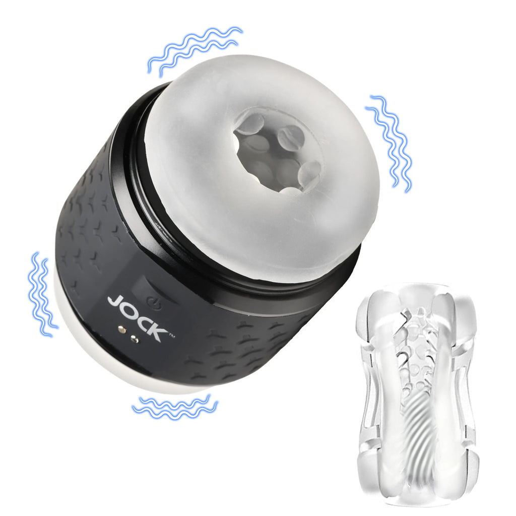 You grab the lube and the toy to the bed, slip your pants off and take out your shaft. You start stroking it, getting it harder, before turning the toy on. You want a tight squeeze, so you choose the smaller hole. The nubs buzz and vibrate as they grip your head and shaft with each long stroke. You decide to take the end cap off and your strokes quicken. The intensity changes as you play with settings. You let yourself fantasize about your favorite actor, and before you know it, you're on the edge and ready to burst!