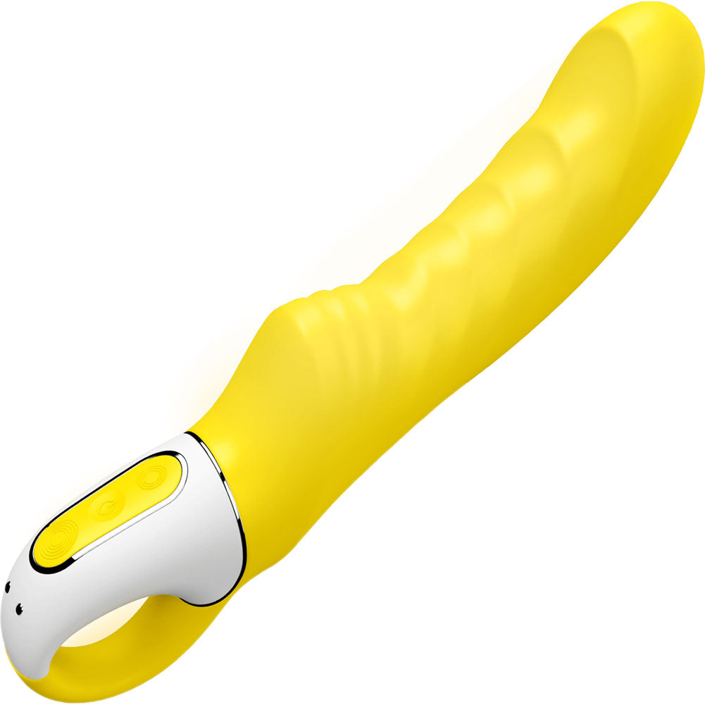 The Satisfyer Yummy Sunshine has a lot to offer: A ribbed structure, strong vibrations and a smooth shaft made of solid silicone - all packed into a playful, cheerful design. The curved vibrator hits your G-spot directly, stimulating you with its sensually ribbed texture. You can choose from 12 vibration programmes consisting of 6 intensities and 6 vibration patterns.