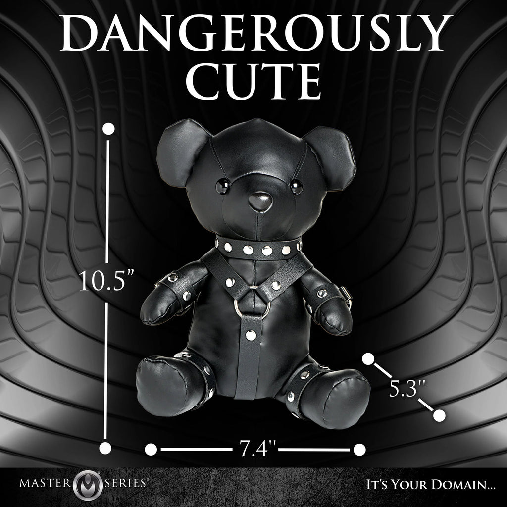 Introducing the ultimate kinky token, the Master Series Gimp Bear, the perfect blend of adorable and edgy to add a kinky twist to your collection. Crafted with high-quality vegan leather, this unique teddy bear is dressed in a meticulously designed gimp outfit that captures the essence of BDSM culture while remaining an endearing companion. It's not just a teddy bear; it's a statement piece that adds a playful and naughty touch to your space or your partner's. Spot clean with a damp cloth as needed.