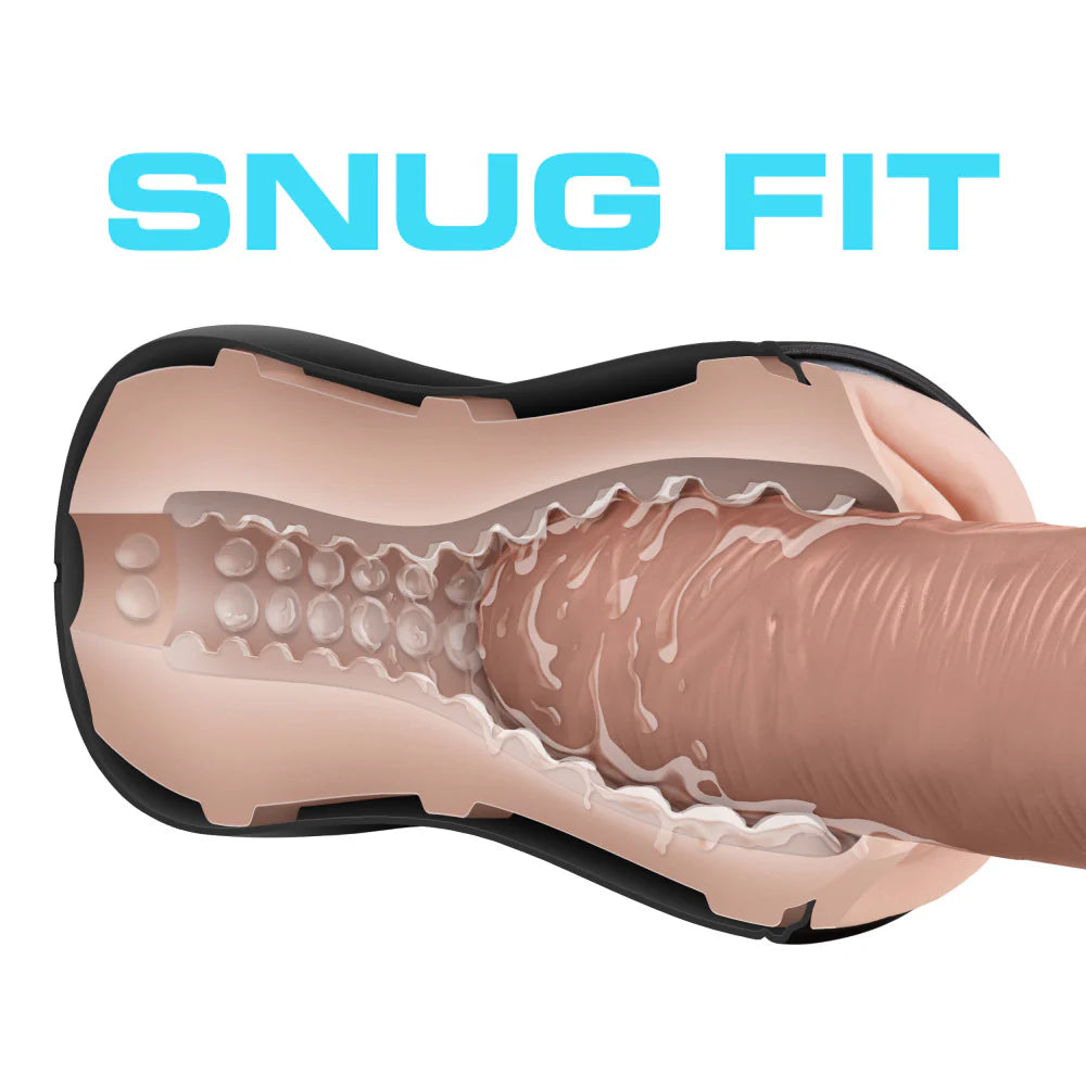 The M for Men Soft & Wet Pussy with pleasure orbs cup is loaded with fun! This pocket stroker is self lubricating. Add a little water or saliva and everything gets slippery. Just like the real thing! Squeeze the pliable cup and open or close the PerfectFlo™ air valve for more suction and pleasure. PerfectFlo™ mimics a blow job. You control the suction . M for Men masturbators are soft, flexible, and filled with sensational textures. Self lubricating properties are temporary. It will last up to 12 uses. To clean, wash with soap and water. Pat dry and allow to air dry before storing. You can start using water based, silicone or hybrid lubricants after self lubricating properties begin to diminish. Refresh it with our Blush Toy Renewal Powder when product is clean and dry. Considerably larger than most other similar products on the market. If you are bigger use it without the canister. It's open ended so its one size fits all.
