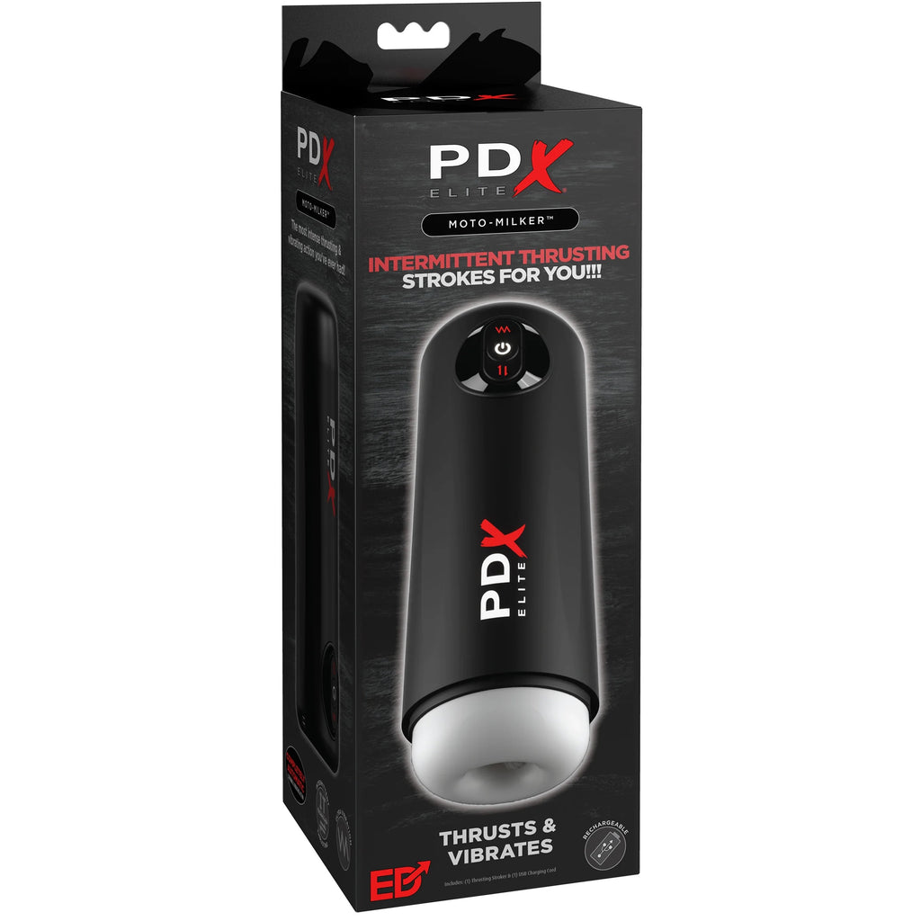 | Care Instructions: | The PDX Elite Moto-Milker sleeve is removable for easy cleaning. Simply pull the edges of the TPE sleeve to remove it. Cleanup is a snap after the fun with antibacterial cleaner and warm water. Do not submerge the Moto-Milker in water. If desired, use a water-based lubricant like Moist® with this product. |