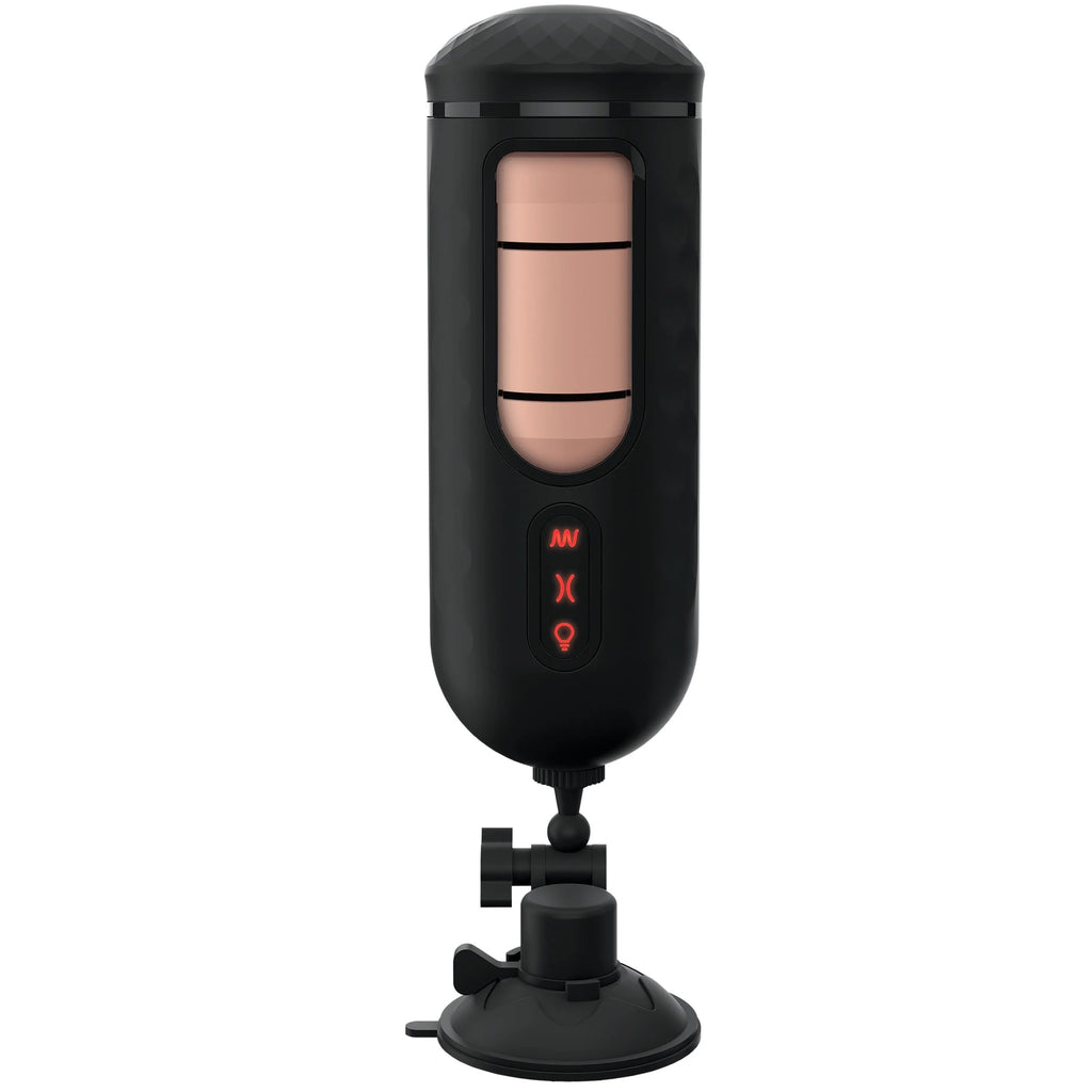For fully automated vibration, simply press the button on the powerful rechargeable motor and enjoy 7 patterns of teasing vibrations that travel all the way up your shaft. Explore your options! The sturdy exterior case with an adjustable locking suction cup can be set to your preferred hands-free position, or remove the interior Fanta Flesh sleeve for handheld pleasure.