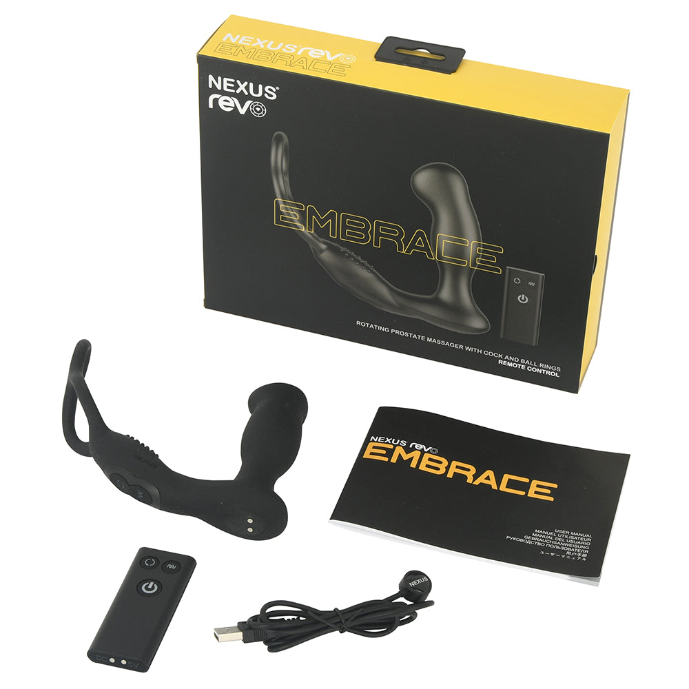 Revo Embrace Remote Control Rechargeable Rotating Prostate Massager with Cock & Ball Rings